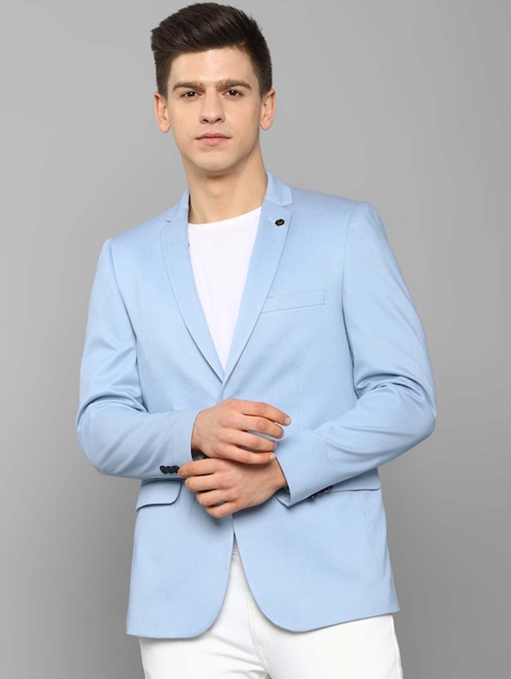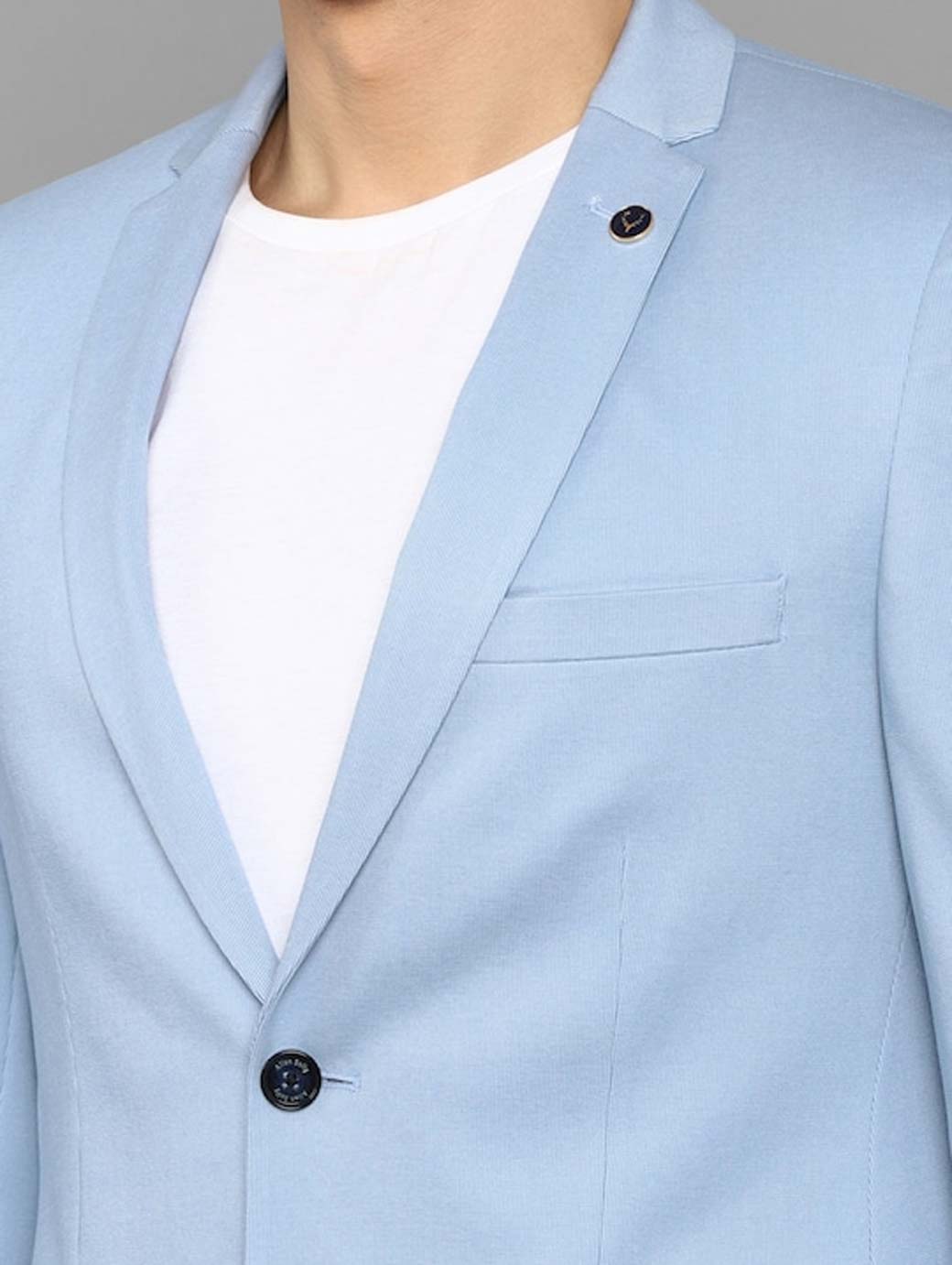 Blue solid slim-fit formal blazer,