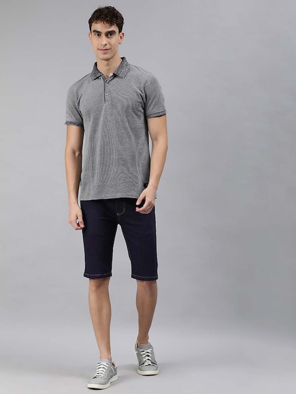 These trendy blue washed shorts will help you set the tone for this season. Match this blue pair with a handsome shirt and easy loafers for your next date night.