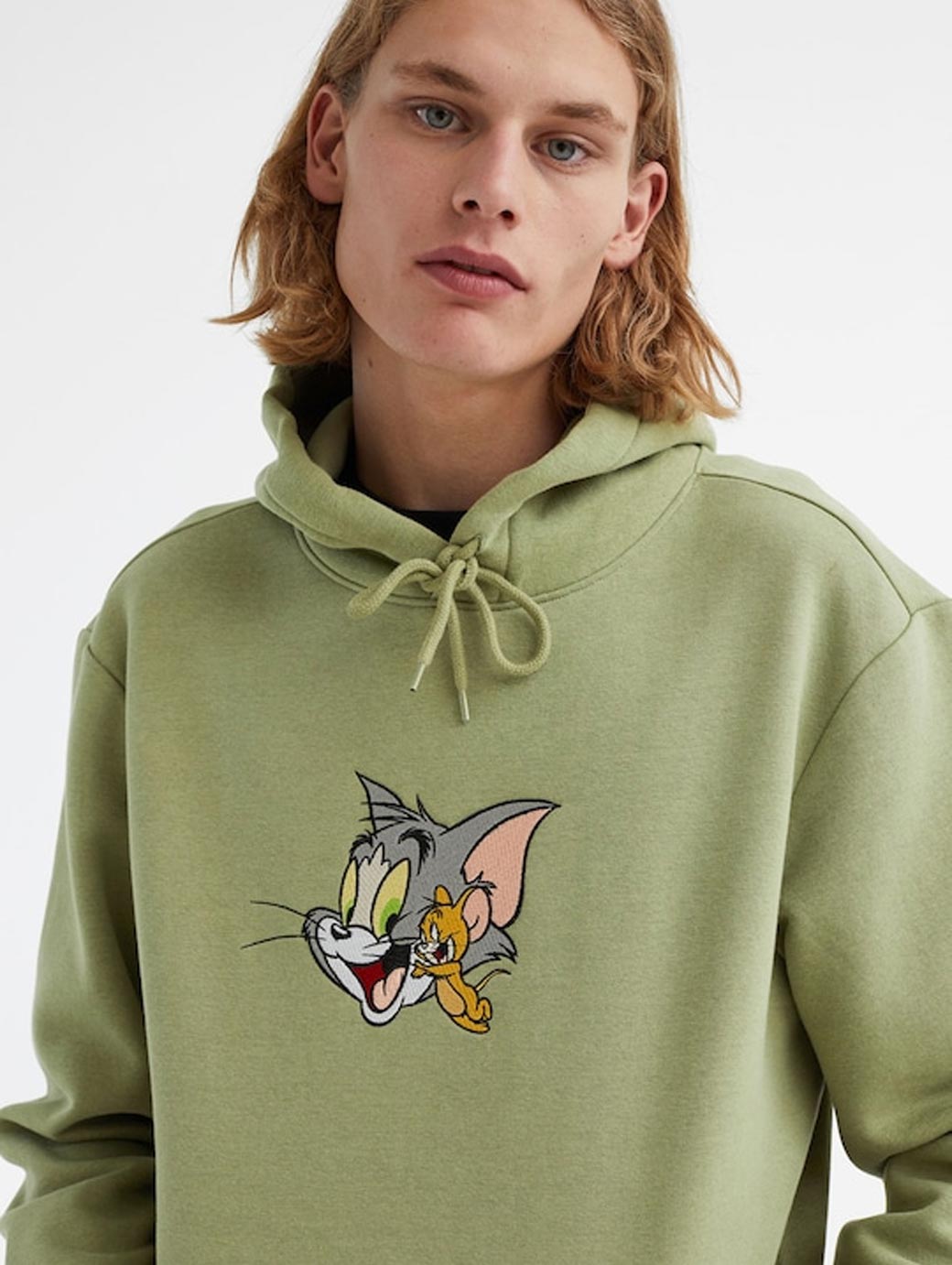Long-sleeved hoodie in soft sweatshirt fabric with a kangaroo pocket, double-layered drawstring hood with a wrapover front, and ribbing at the cuffs and hem.