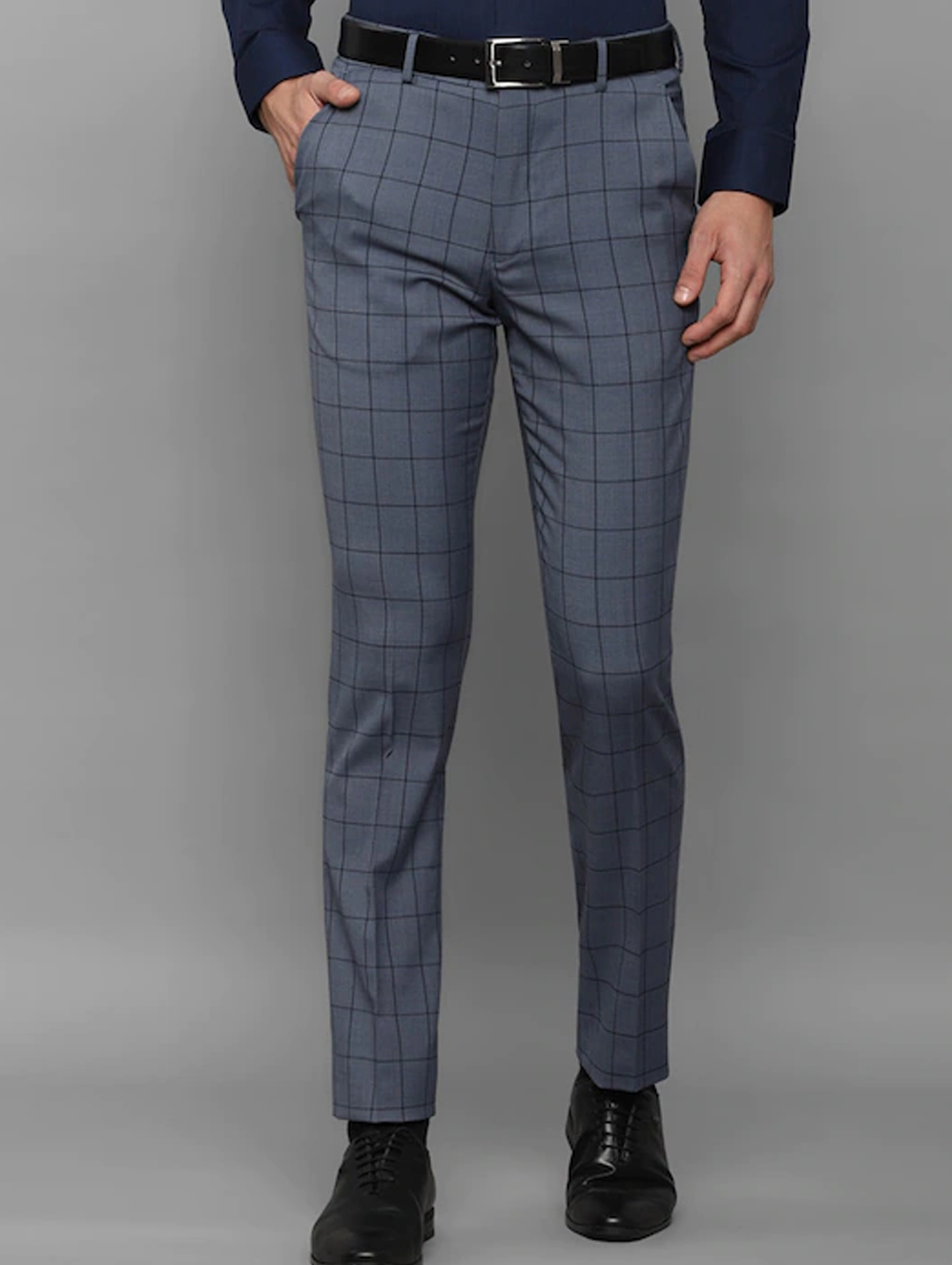 Men Grey Checked Slim Fit Trousers
