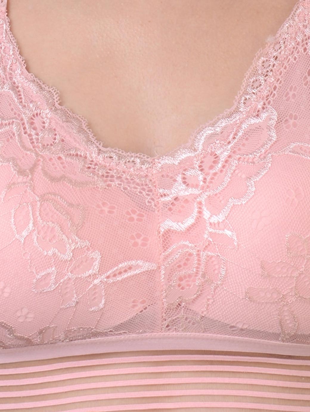 Pink self design full-coverage Bralette Lightly Padded and Non-Wired seamless cups Regular straps and slip-on Back style: Styled Back Feature: All Day Comfort