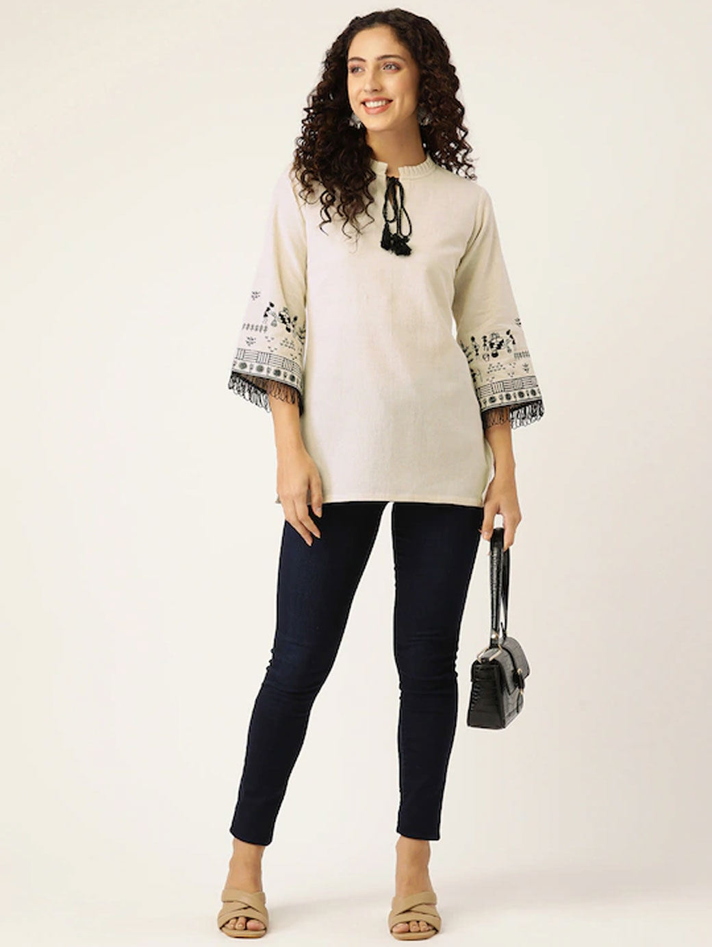 Off white regular peplum top Self design self design Shoulder straps, sleeveless, shoulder straps sleeves Woven.