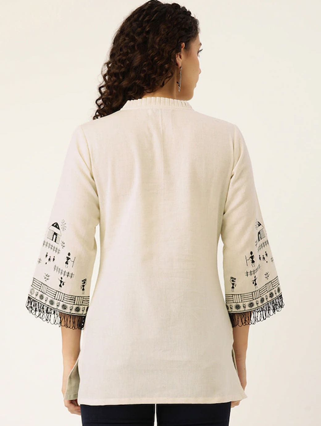 The model (height 5’8″) is wearing a size S