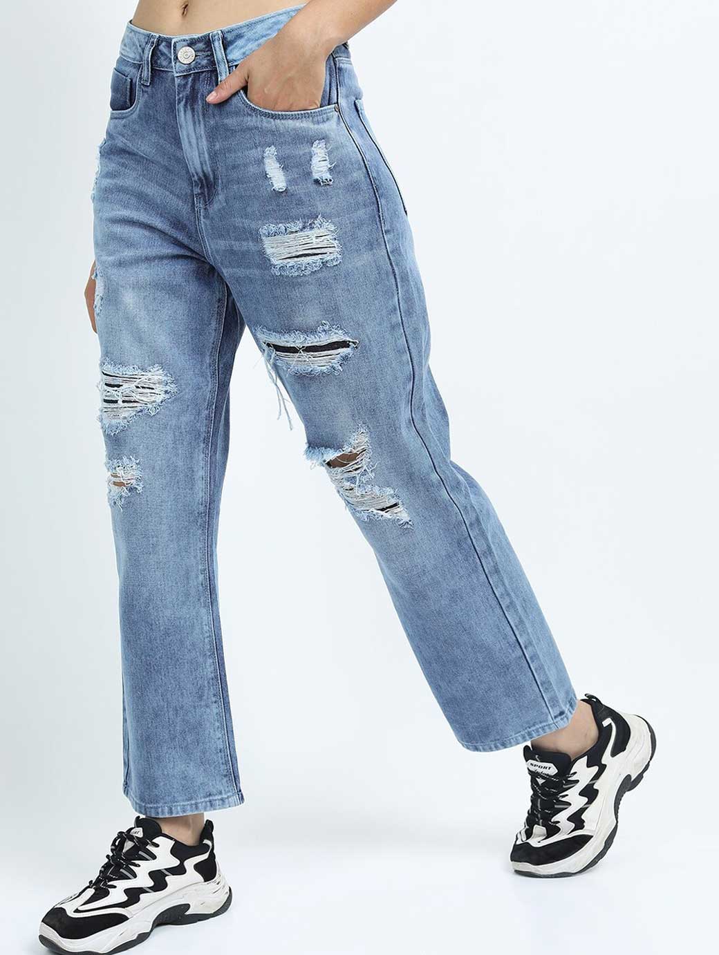 Light shade, heavy fade blue jeans
