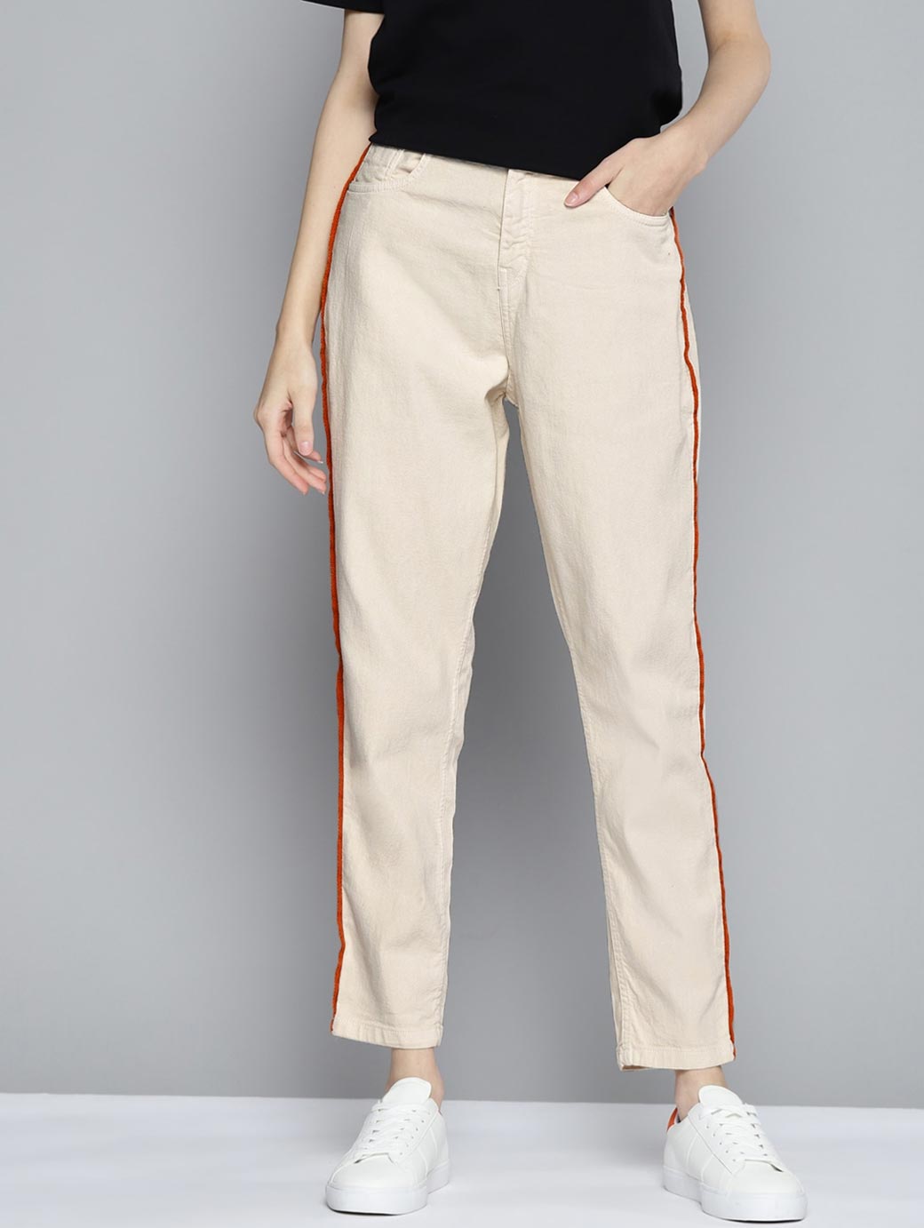 Women Off White Boyfriend Fit Stretchable Jeans